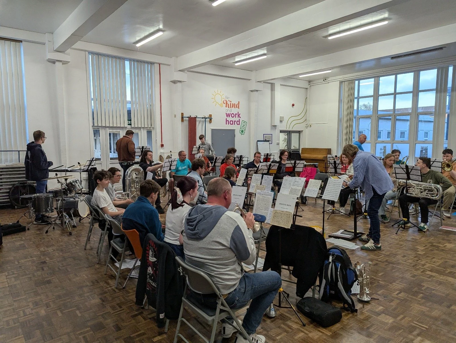 Each summer, we need to leave KEVI for a few weeks while the rehearsal room there is being used for exams. In 2025, Stobhillgate school kindly allowed us to use their hall.